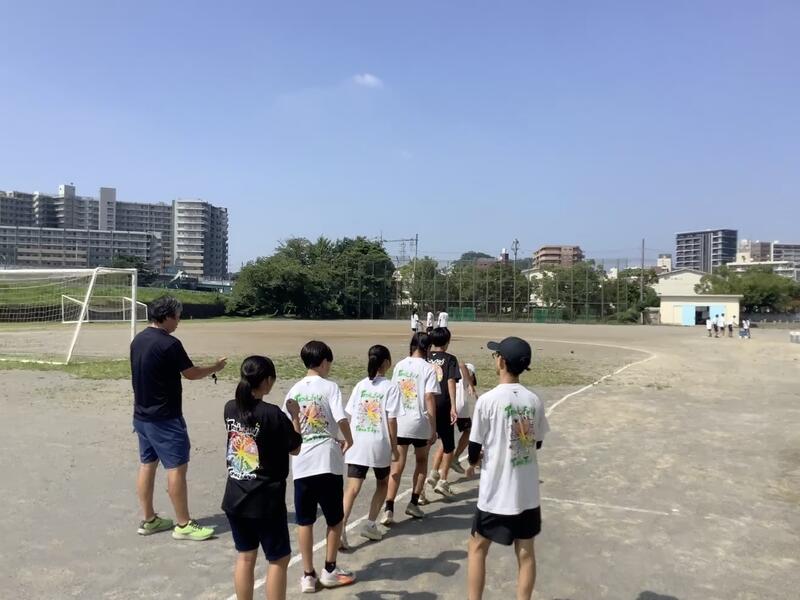 今日は日陰スペースでの基本ドリルを部員全員で行ったあとに長距離ブロックとしての専門練習が行われました。暑さ対策として、走る距離を短くしたり、途中で水分補給時間を設けたり、ペースにゆとりを持たせたりしていました。1週ごとに先頭が入れ替わるなどの工夫も見られました。主体的に練習に取り組み頑張る様子がたくさん見られました。