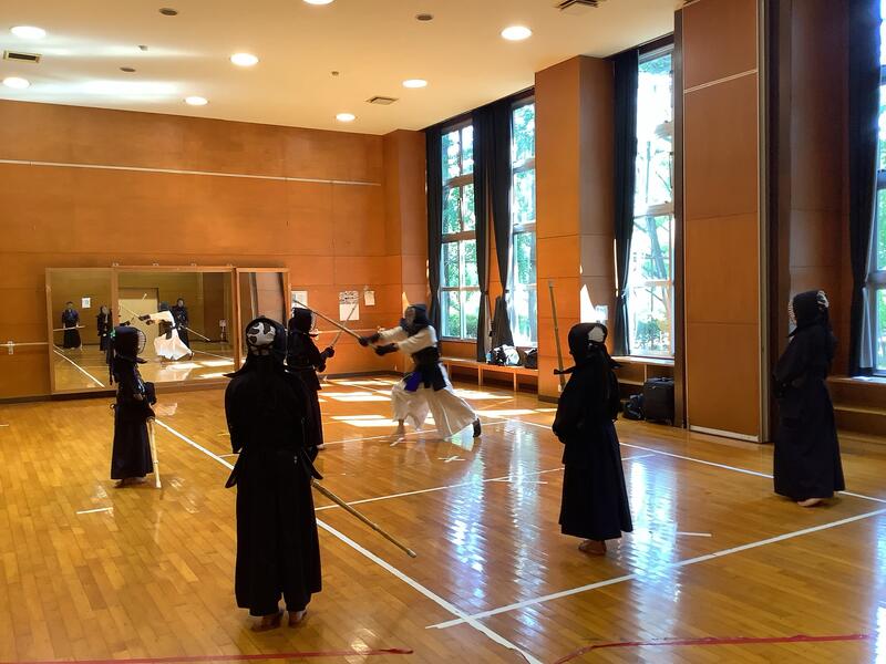 剣道部では、段や級の取得並びに大会での活躍を目指した練習に一生懸命に取り組んでいました。毎回一つ一つの動きやポイントについて確認した上で、ペアとなる相手をローテーションしながら技能を高める練習に取り組んでいました。経験のある上級生が下級生に実演も交えて教えたりもしていました。技の向上とともに掛け声や間合いの大切さも学んでいました。中学生になってから剣道を始めた生徒もいますが、繰り返すことで上達していました。今後、他校との合同練習も予定されていますが、更なる技術の向上を目指して頑張ってください。