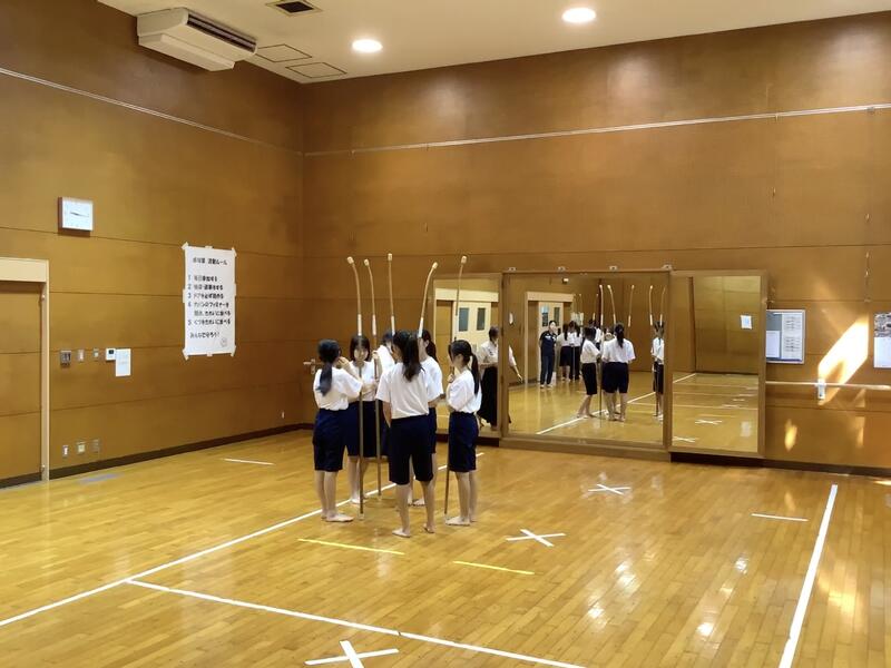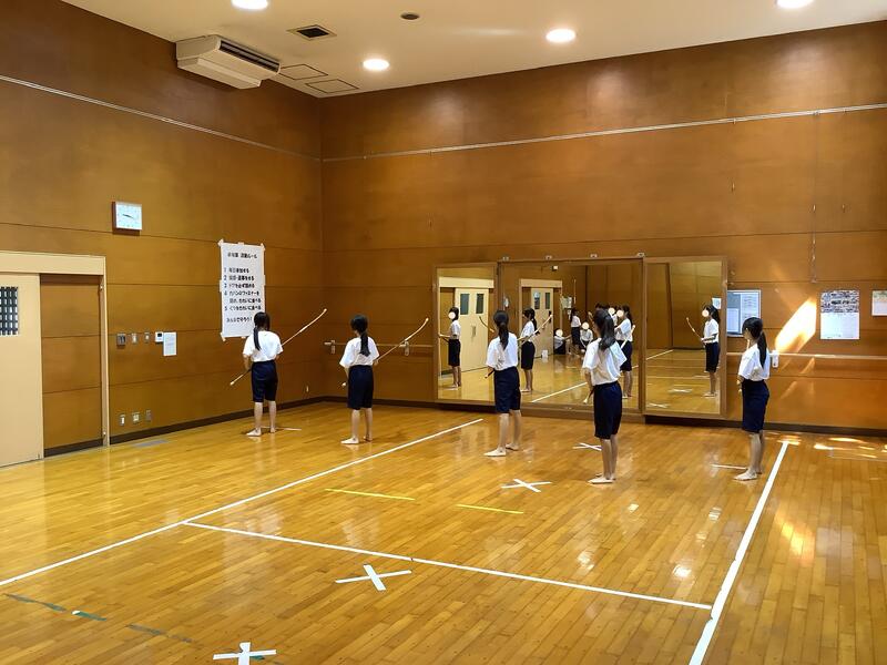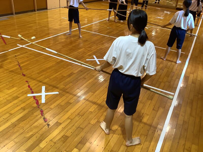 なぎなた部では、技術の向上だけでなく、心を磨いたり、気力を高めたり、体力を養うなど心身ともに調和のとれた成長を目指した活動が行われています。今日は1、2年生が顧問や部活動指導員の先生の指導のもと、一生懸命に練習に取り組んでいました。また、後半にはリズムに合わせた「リズムなぎなた」の練習も行っていました。生徒の皆さんが主体的に練習を進め、技術の上達を図っていました。地域での成果発表の場面が楽しみです。