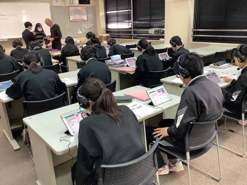 OST(Online Speaking Training)オンライン英会話が、2年生を対象にして始まりました。今回は3日間、次回は1月16日からの4日間です。1回あたり25分間で、タブレット端末とヘッドセットを使って、海外の講師の方と1対1の会話レッスンを行います。このレッスンを通して、実際にコミュニケーションで活用できる技能を培っていきます。