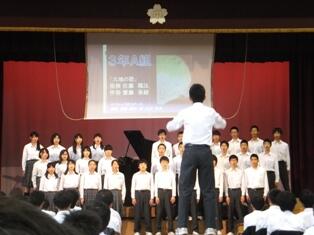 午前の部の合唱コンクールでは、各学年、各クラスの今まで頑張ってきた歌声が体育館に響き渡りました。3年生が響かせた素晴らしい歌声、クラスの団結という多摩中の伝統、多摩中魂を1、2年生はしっかり受け継いでください。