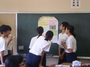 9月4日(金)6校時に2学年の生徒が7月に行われた職場体験の報告の発表会を行いました。生徒はこの発表に向けて、夏休みから事業所ごとに集まり、模造紙に体験内容をまとめるなど準備を進めてきました。