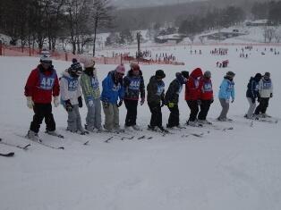 早速、1日目のスキー実習が富士見高原スキー場で行われました。インストラクターの先生から丁寧な指導を受け、初めての人も転びながらも、曲がったり止まったりする技術の習得に一生懸命に取り組んでいました。