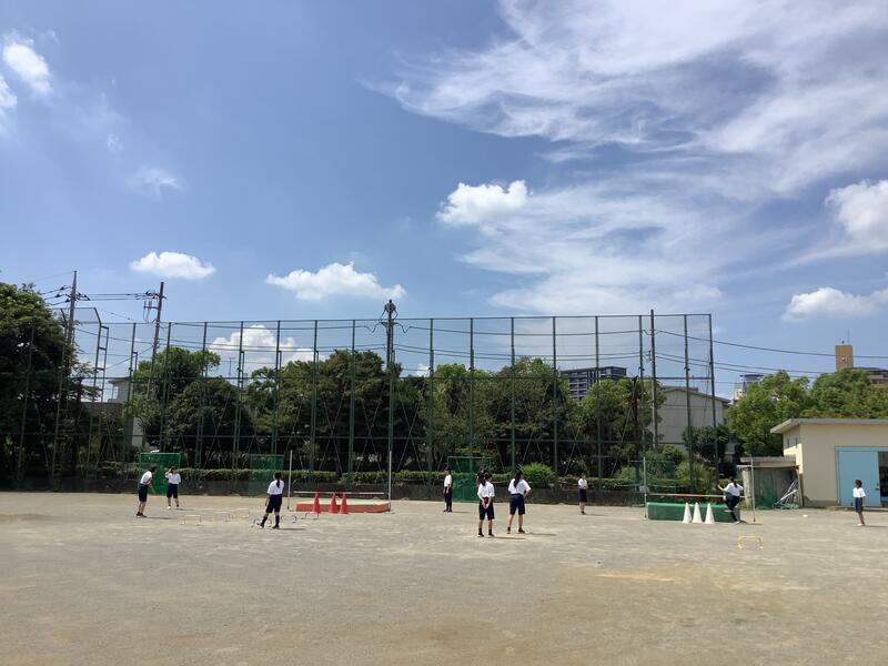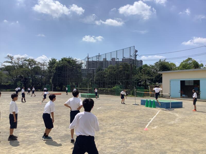 1年生の保健体育の授業では、走り高跳びの学習が行われていました。自己記録を更新していくために、目標やラインが引かれ、技術の向上に役立てられていました。練習を繰り返すうちに、スピードやタイミング、体の使い方などが上達していきました。