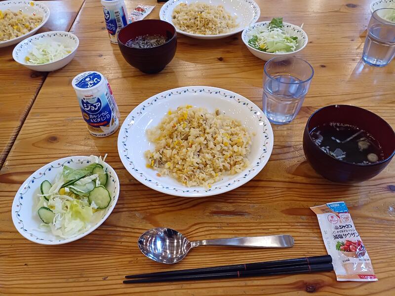 移動教室最後の食事は、チャーハンです。