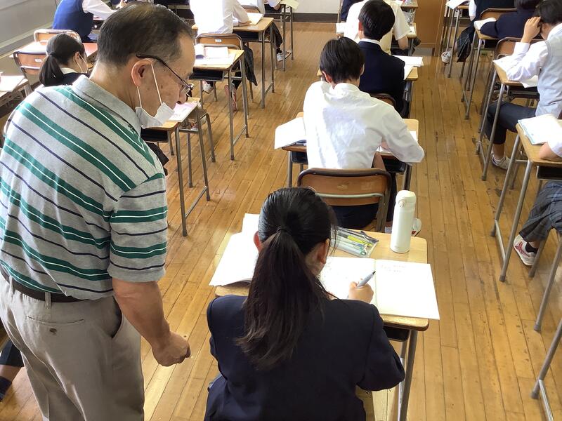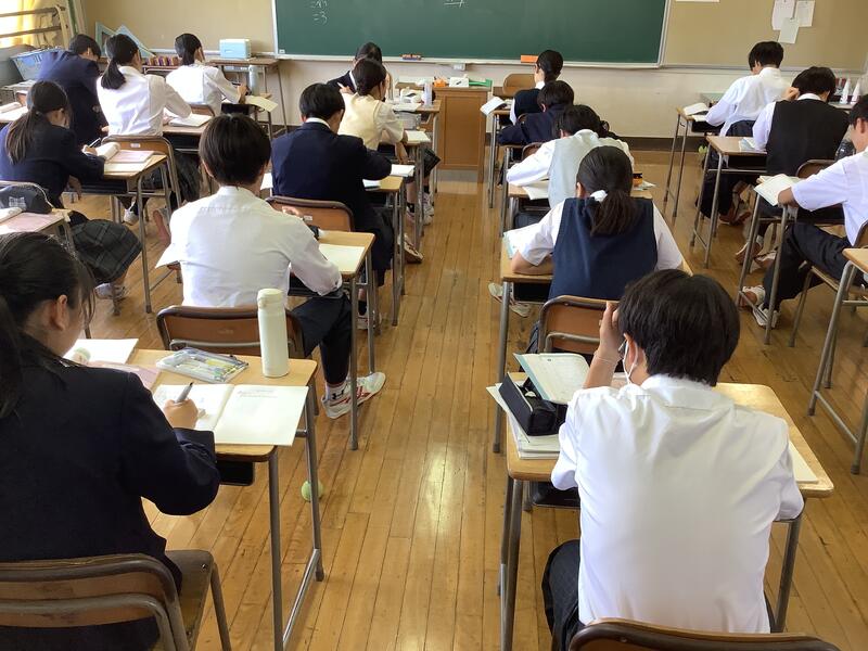 3年生の数学の授業では、平方根に関する学習が進められていました。章末の難問に、友達とも力を合わせながら挑戦していました。