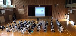 体育館では1年生、各教室では2・3年生を開催させていただきました。