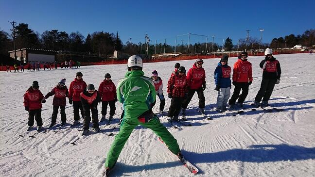 この時期にしてはとても暖かい日和の中、富士見高原スキー場でスキー実習を行いました。まぶしい日差しと真っ青な空のもと、インストラクターの先生の指導を受けて、汗を流しながら、熱心に練習に励みました。その甲斐あって、ほとんどの実習班が初日からリフトに乗り、斜面を滑ることができました。