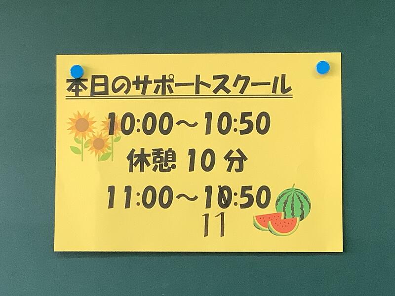 夏休みのスタートに合わせ、学習の補習と水泳指導が始まりました。サポートスクールは涼しい環境の中、落ち着いて自主的に学習を進めていました。プールでは、指導者4人体制でじっくりと基本の習得に励んでいました。