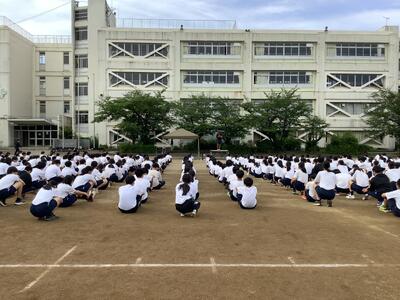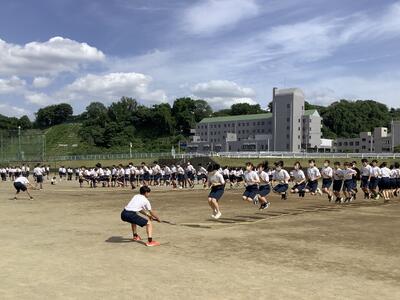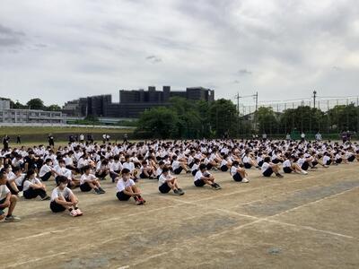 本日の6時間目に体育祭前の最終練習となる全校練習が行われました。種目は、ブロック対抗大縄跳び。全体での練習時間をとった後、本番と同じように対抗戦形式で行いました。練習から集中力が高く、競技中はどの色も声をからさんばかりの応援で、大いに盛り上がっていました。競技が終わった後には、体育的実行委員が素早く用具を片付け、チームのみんなをしっかりと並ばせていました。