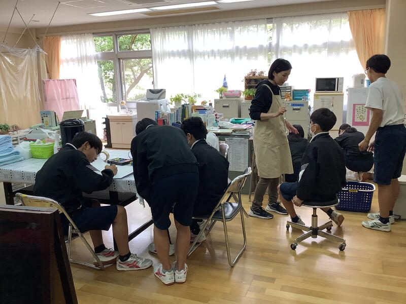 養蜂や河の調査など、様々な活動を行っているチャレンジ部ですが、今日は2つの教室に分かれてボードゲーム(人生ゲーム)とカードゲーム(人狼)を行って、1年生から3年生までとても楽しげにコミュニケーションを図っていました。