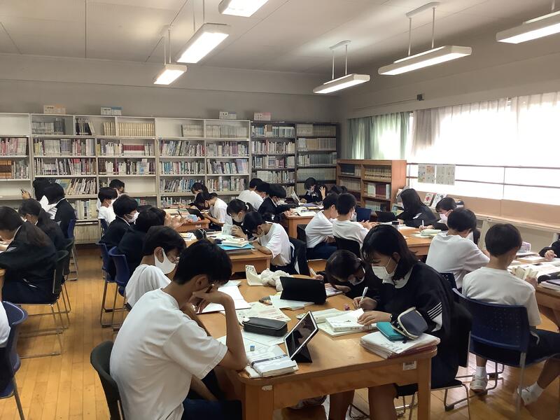 本日から試験1週間前となり、特別な場合を除いて部活動等の朝や放課後の活動がなくなりました。それに合わせて本日より「朝勉」が始まりました。早速、朝の静かな時間に集中して学習したい生徒が続々登校する姿が確認できました。