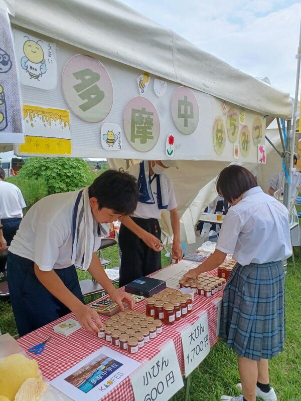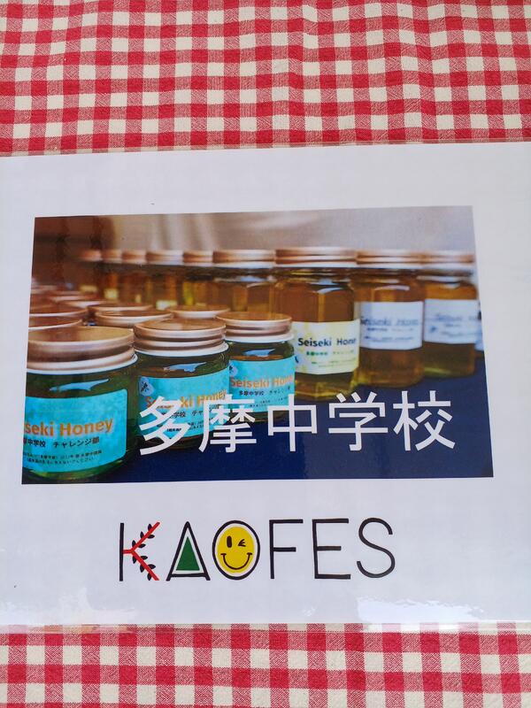 一ノ宮公園(多摩川河川敷)で開催されているKAOフェス2023に、チャレンジ部の生徒が地域学校協働本部の方々と一緒に、多摩中でとれたハチミツの販売を行っています。お昼12時までの予定ですが、無くなり次第終了となりますので、お早めに!