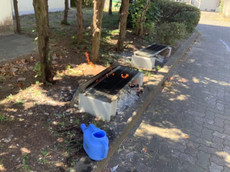 F組による火おこし体験と飯盒炊さんが行われました。着火した後は大きな炎になるところもあり、調節が大変でしたが、上手にご飯が炊けていました。