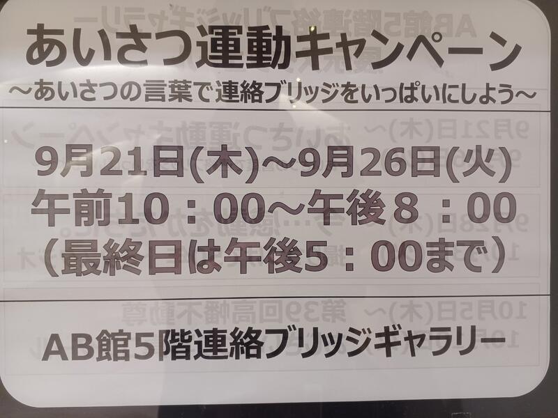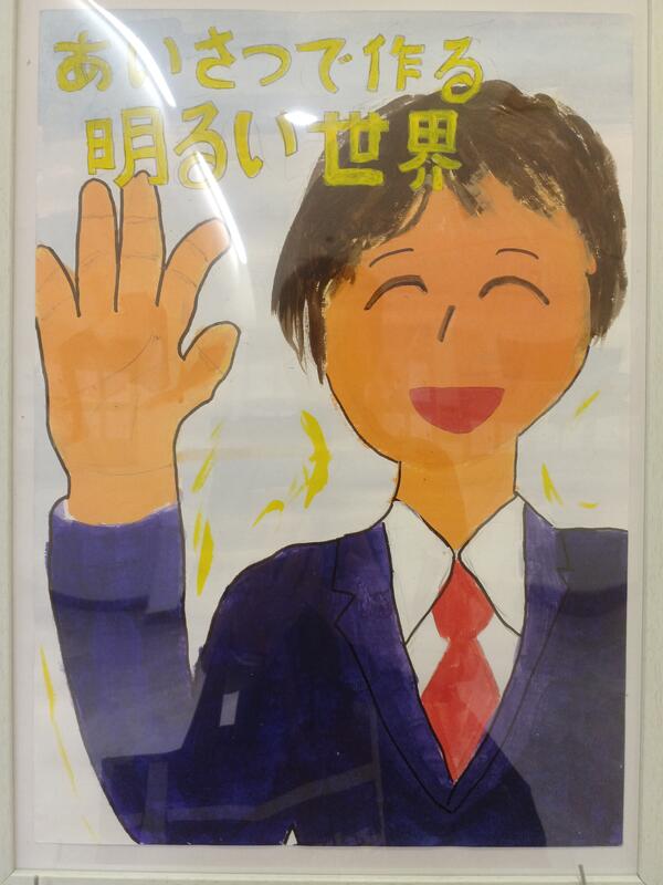 7月から9月まで多摩市のあいさつ運動キャンペーンになっています。その一環として、第一地区青少協によるあいさつ運動の取り組みがスタートしました。あいさつを呼びかけるポスターを美術部の部員が作成し、26日までせいせきショピングセンターの5階の連絡ブリッジに飾られています。みんな素晴らしい出来映えです。