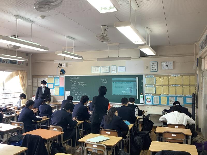 また、数学の授業では、相似の応用問題に挑戦していました。実生活と関連する問題を、数学的に考察し、解いていました。粘り強く、一生懸命に問題に取り組んでいました。