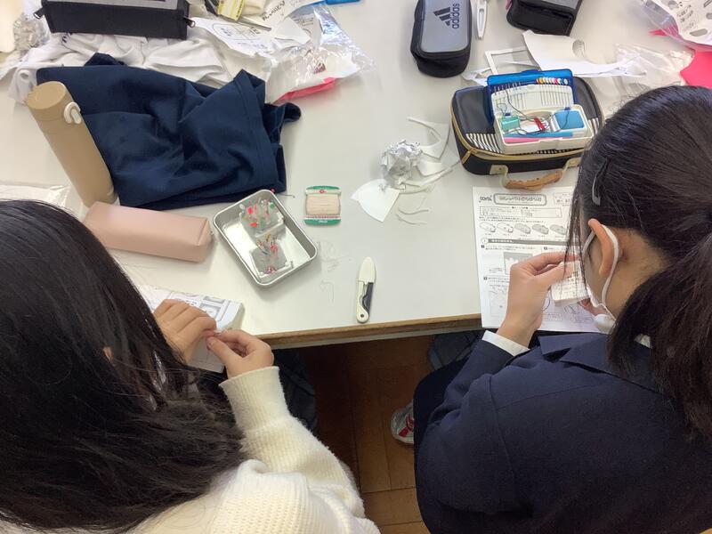 その3年生、今日の家庭科の授業では、ぬいぐるみの製作を行なっていました。6種類の動物のキャラクターの中から各自が選択し、手順書に従って作業を進めていました。友達同士でも教え合いながら、楽しそうに製作しており、手際の良さはさすが3年生と思いました。完成が楽しみです。