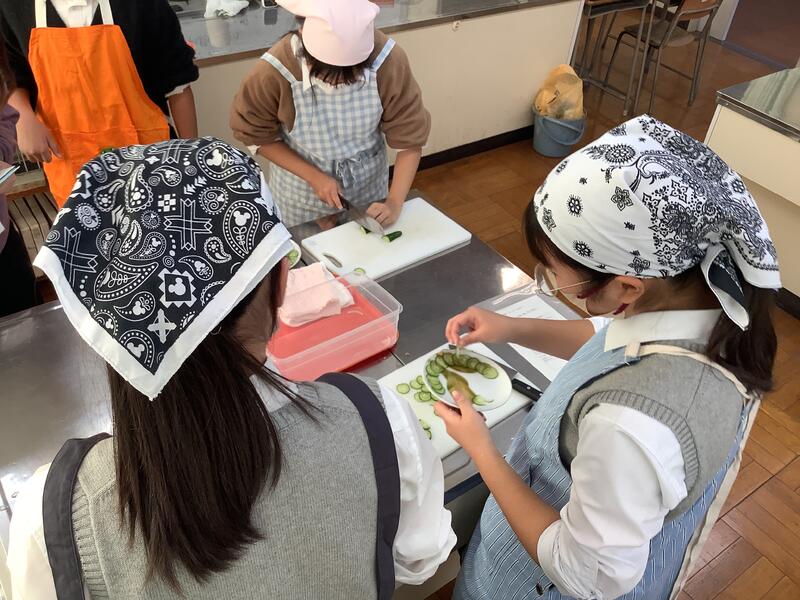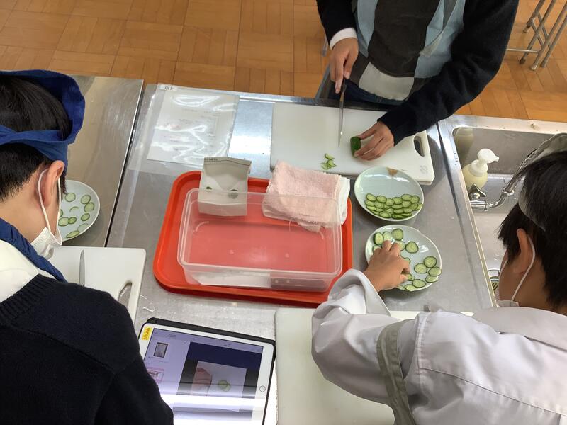 また、1年生の家庭科の授業では、調理実習が行われていました。動画を参考にしながら練習を続けるうちに、上達していきました。盛り付けにも個性が溢れていました。