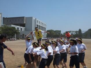 また、各学年で学年種目(1年いかだ流し、2年ムカデ競争、3年全員リレー)に取り組み、クラスの中でお互いに励まし合いながら、今までの練習の成果を発揮していました。