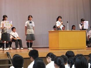 9月1日(火)2学期の始業式が行われました。川崎志馬くん(3-B)、丸島大輝くん(2-A)、多田雪乃さん(1-B)の3人が学年代表として2学期の決意の言葉を立派に発表しました。その後、校長先生より「命の大切さ」についてお話がありました。