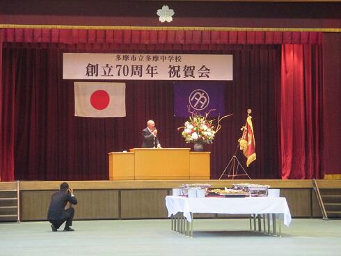 11月11日(土)、多摩中学校の創立70周年を祝う記念式典が、阿部裕行多摩市長をはじめ120名近くのご来賓の皆様が列席する中、厳粛に挙行されました。
