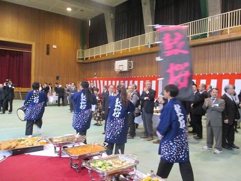 午後は、ご来賓、卒業生、保護者、教員など300名以上の人が本校体育館に集い、祝賀会が開かれ、創立70周年を祝うとともに、同窓生の旧交を温めました。