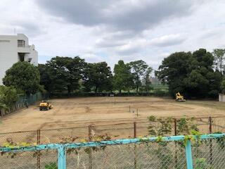 校庭のテニスコート改修工事が始まりました。