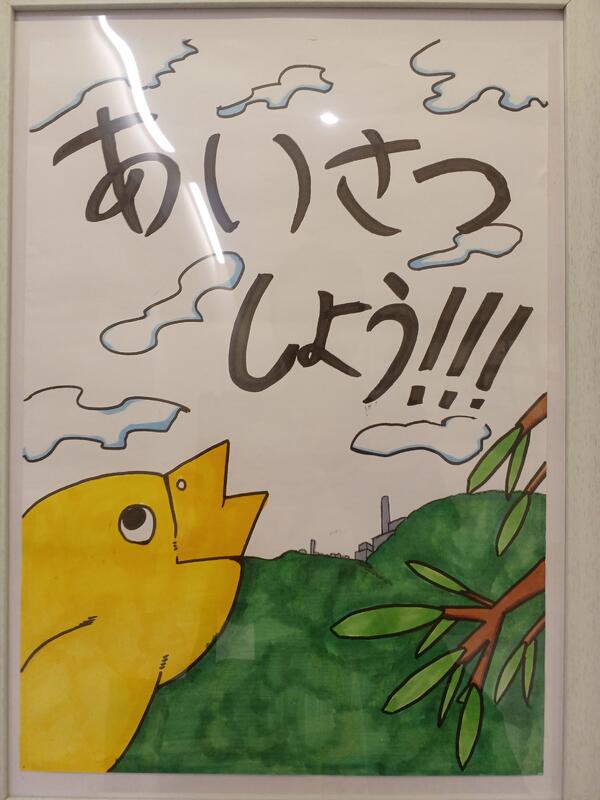 7月から9月まで多摩市のあいさつ運動キャンペーンになっています。その一環として、第一地区青少協によるあいさつ運動の取り組みがスタートしました。あいさつを呼びかけるポスターを美術部の部員が作成し、26日までせいせきショピングセンターの5階の連絡ブリッジに飾られています。みんな素晴らしい出来映えです。