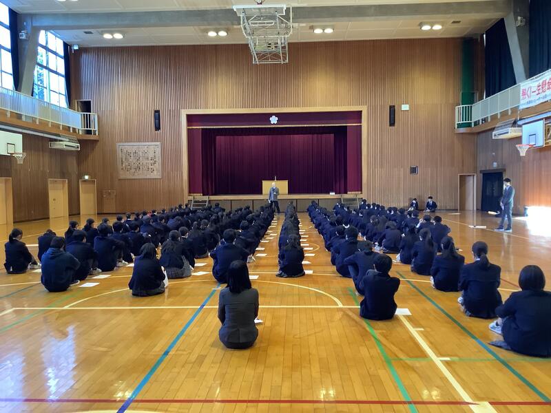 終業式では、校歌斉唱の後、F組と各学年の代表者が2学期の成果を発表してくれました。発表の態度はもちろん、代表生徒の発表内容はどれも大変立派なものでした。終業式後には、卓球部•バレーボール部•陸上部•税の標語の表彰がありました。