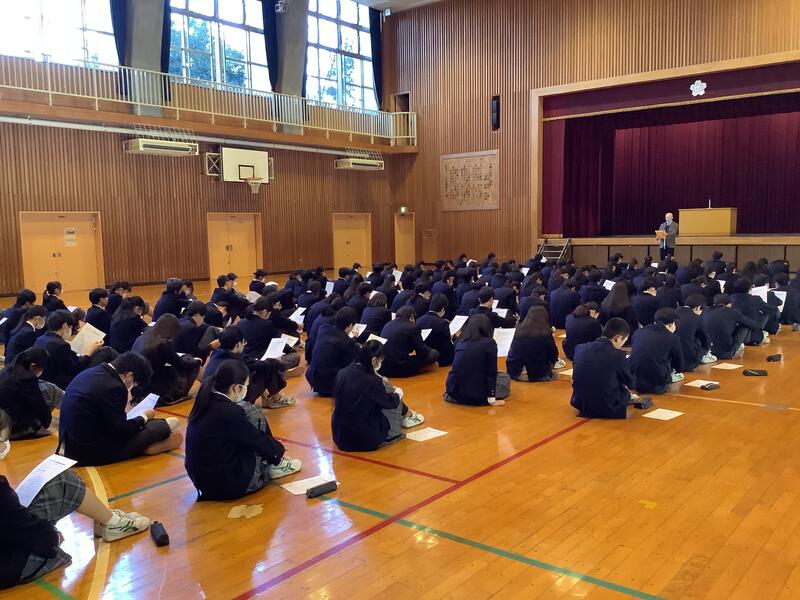 3年生の学年集会では、2学期の振り返りとともに、20日から始まった都立高校のWeb出願についての確認をプリントを使って行いました。多摩中として設定してある出願期間は、推薦が1月11日まで、一次試験は1月30日までとなっています。