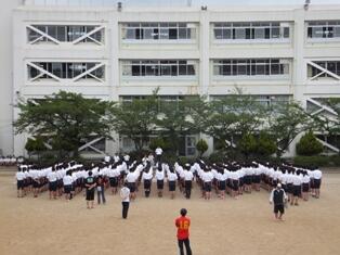 開会式終了後、最後に色別ブロックやクラスごとに円陣を組んで解散式を行い、生徒の表情からは充実した素晴らしい運動会だったことが感じました。