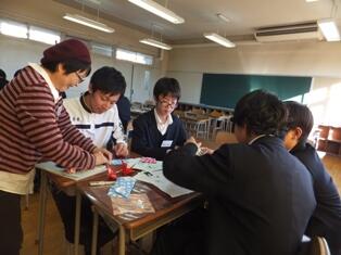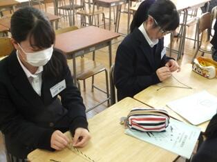 11月27日(金)と12月4日(金)5、6校時、2年生は「伝統文化継承会」の学習を行います。本校の学校支援地域本部の皆様の力をお借りして、地域にお住まいの日本の伝統文化にご造詣の深い先生方をお招きし、12コースの体験学習講座を開設し、生徒が各自でコース選択しました。
