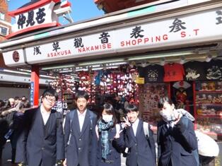 冷たい北風でしたが晴天に恵まれ、事前に班ごとにで決めたコースを見学しました。江戸切子を体験する班や今年の11月に移転される築地市場を見学する班など、東京の魅力を感じることができた1日でした。