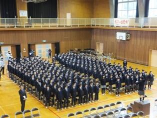 3月25日(金)修了式が行われました。3年生が卒業し、新しく2年生の代表が指揮と伴奏を務めました。初めてでしたが、 土井江玲菜さん(2C)の指揮も 松田悠さん(2A)の伴奏も立派でした。その後に、2年の泉怜くん(2B)、1年の平久江悠達くん(1D)の代表生徒が今年の振り返りと新学年の抱負を話しました。そして、校長先生から代表生徒の朝井くん(2A)、井谷くん(1A)に修了証が渡されました。