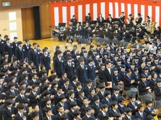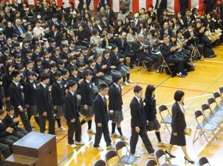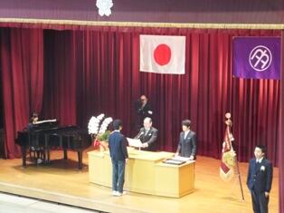 卒業生が堂々と入場し、一人一人に校長先生より卒業証書を手渡されました。校長先生から式辞、来賓の方からお祝いの言葉をいただきました。