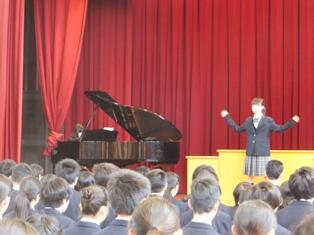 校歌(指揮:3B土井玲菜さん、伴奏:3D松田悠さん)