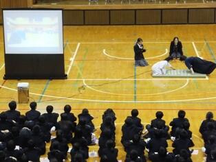4月14日(木)6校時に地震を想定した避難訓練を実施しました。緊急地震速報の訓練放送が流れ、生徒は素早く机の下にもぐりこみました。次の放送で体育館に集合して点呼確認を行いました。