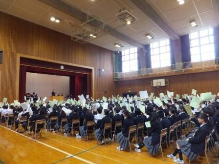5月9日(月)の6校時、全校生徒が体育館に集まり、生徒総会が行われました。