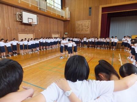 最後に各縦割りのブロックミーティングが行われました。3年生のブロックリーダーが自己紹介と熱い思いをみんなに伝えて円陣を組み、気持ちを1つにして頑張ろうという気持ちが伝わってきました。