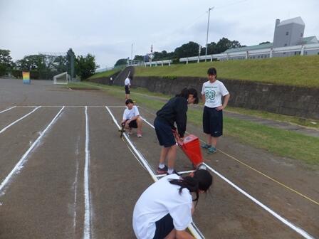 5月27日(金)運動会に向けて最後の全体練習と前日準備を行いました。1時間目の全体練習では、体育館で開会式と閉会式の最終確認と各ブロックでミーティングを行いました。予行のときに比べ、一人一人意識して取り組みラジオ体操や校歌がよいものになりました。また、放課後、各係に分かれて、ライン引きやテントの準備などを行い、明日最高の運動会となるように各自の仕事を一生懸命やりぬいてくれました。