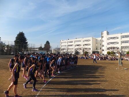 12月21日(水)の午後に年末恒例の部活対抗ロードレース大会が行われました。風もなく暖かく絶好のマラソン日和でした。大栗川土手~交通公園~多摩川土手~関戸橋のコースは男子5000mが91名、女子3500mに82名が参加して健脚を競いました。各部とも日頃の部活動での練習の成果を発揮しました。閉会式では、男女各1位による優勝スピーチが行われ、明日の終業式で表彰が行われます。