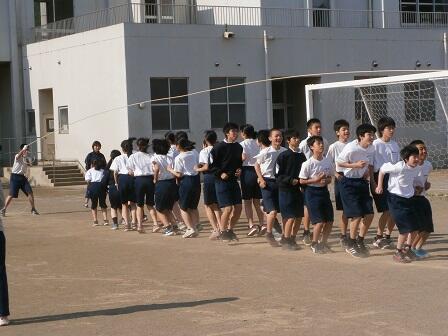5月18日(木)、放課後の練習は1~3年生が縦割りで大縄跳びの練習を行いました。3年生が大きな声を出して1、2年生をリードし、数多く飛べるように練習に取り組んでいました。数回飛べたときには拍手や歓声が上がっていました。