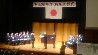11月13日(月)、多摩市関戸公民館 ヴィータホールで「平成29年度 納税表彰式」が行われました。多摩中からは3年C組宇野 雄一朗君が「日野税務署長賞」に選ばれ、表彰されました。