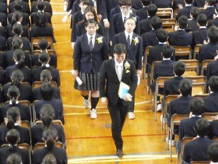多摩中らしく、厳粛さとともに感動のある卒業式でした。卒業生、一人一人が校長先生から卒業証書を手渡されました。校長先生からの式辞、来賓の方からお祝いの言葉をいただきました。