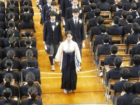多摩中らしく、厳粛さとともに感動のある卒業式でした。卒業生、一人一人が校長先生から卒業証書を手渡されました。校長先生からの式辞、来賓の方からお祝いの言葉をいただきました。