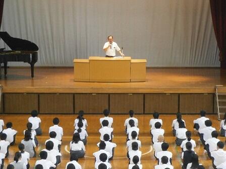 2学期始業式 投稿日時 : 2018/08/30 多摩中学校管理者 2学期の始業式が8月30日に行われました。校歌、各学年生徒の決意表明、校長先生のお話という内容でした。 2学期は1年間の中で最も長い学期で行事もたくさんあります。一つ一つの行事に熱心に取り組み、充実した時間にしてほしいと思います。 始業式の後には、各部活の表彰がありました。夏休みの試合で成果を上げた部もたくさんありました。立派なことです。これからも頑張っていきましょう。校歌生徒代表の言葉校長先生のお話表彰 {{options.likeCount}} {{options.likeCount}}