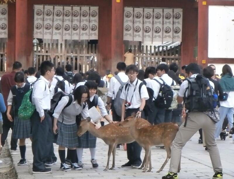 東京を出るときは雨でしたが、奈良で晴れ間も広がり、天気も恵まれました。班行動も学年全体の集合する姿勢もりっぱにでき、調子を崩す人もほとんどなく、修学旅行初日は無事に終了しました。