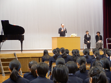 4月26日(金)に離任式が行われました。部活動や学年の生徒がお別れの言葉と花束贈呈を通して、これまでの感謝の気持ちを伝えました。また、それぞれの先生方から、多摩中の思い出や多摩中生に期待することなどの心のこもったお話がありました。