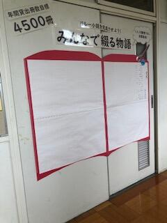 学校図書館前の廊下では、リレー小説がスタートしました。