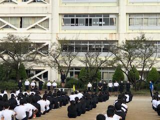 週末の運動会に向けた予行演習で、生徒たちが見せた一矢乱れぬ力強い入場行進です。